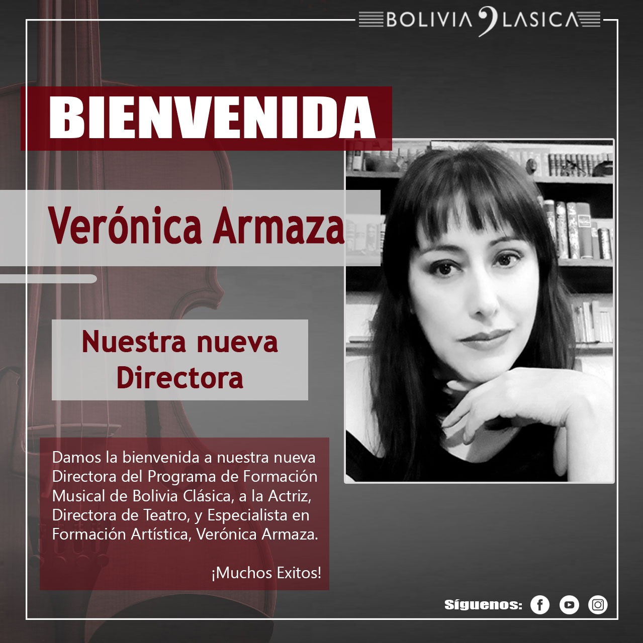 Tengo el agrado de anunciarles que una gran especialista en formación artística, la actriz y directora de teatro, Verónica Armaza, se ha integrado al equipo de Bolivia Clásica. Verónica se hará cargo de nuestra escuela de música, como directora, trabajando mano a mano con el director artístico de nuestra orquesta, Armando Vera Woudstra y con…